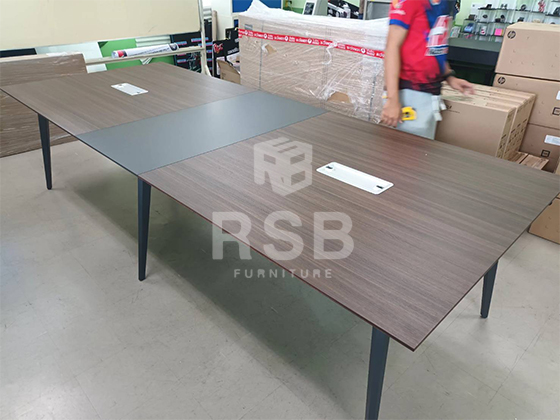 ภาพถ่ายจากหน้างานจริงค่ะ จัดส่งเรียบร้อยโต๊ะประชุม ขาเหล็ก 6 ขา รับน้ำหนัก 200 KG แบบกระจายแรง รหัสสินค้า 2972 รุ่นนี้ท๊อปโต๊ะ ตรงกลางมีคาดลายสีเทา ตัดกับเมลามีนลายไม้ ผิวสัมผัสเหมือนไม้จริง บนท๊อปมีกล่องรอดสายไฟ 2 จุดให้ด้วยค่ะ
