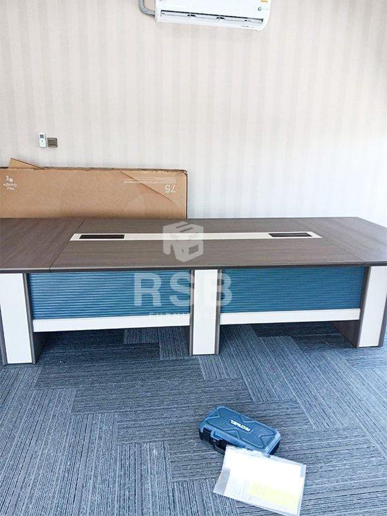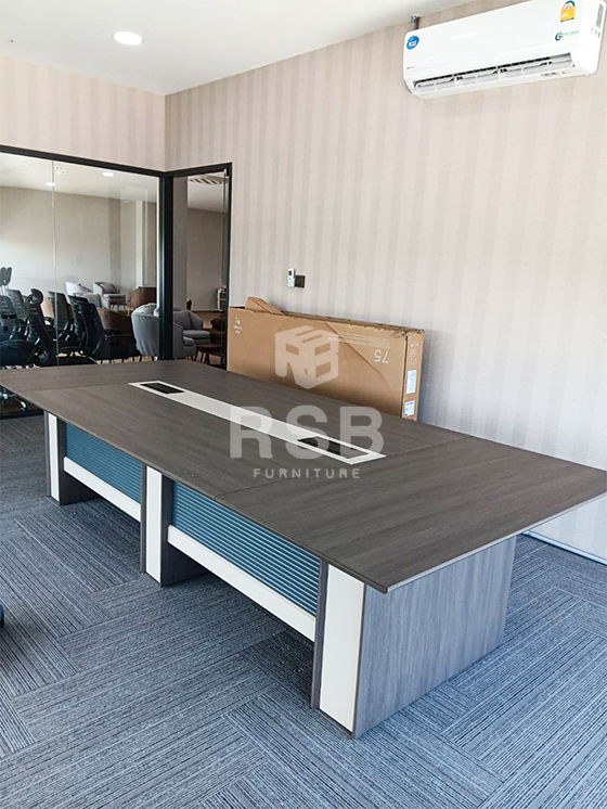 จัดส่งเรียบร้อยโต๊ะประชุม ขนาด W320 x D140 cm ขาโต๊ะ 3 ขา วัสดุไม้แบบหนา TOP วัสดุไม้ MDF ปิดผิวด้วยเมลามีน อีกชั้น กันรอยกันความชื้น บนท๊อปยังมีกล่องรอดสายไฟให้ 2 จุด รุ่นนี้จะนั่งประชุมได้ประมาณ 12 – 13 ที่นั่งค่ะ รหัสสินค้า 4654