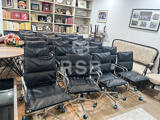 จัดส่งถึงที่เรียบร้อย เก้าอี้ทำงาน Eames บุเบาะเหมือนโซฟา โครงอลูมิเนียม รหัส 4877 สำหรับหน้างานนี้ลูกค้าได้เข้ามาลองนั่งเก้าอี้ที่โชว์รูม RSB ต้องการเก้าอี้พนักพิงระดับกลาง เบาะหนัง ที่มีความสวยหรู นั่งไปมาหลายตัว ตอบโจทย์กับรุ่นในภาพมากที่สุดค่ะ รุ่นนี้ดีไซน์พนักพิงและที่นั่ง 2 ชั้น ด้านในบุฟองน้ำและหุ้มด้วยหนัง PU เกรดคุณภาพ ขาวัสดุอลูมเนียม ไม่เกิดสนิม ใช้งานในระยะยาวได้เลย
