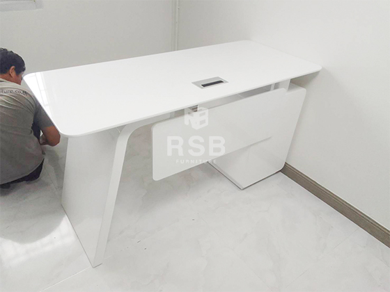 จัดส่งถึงที่เรียบร้อย โต๊ะทำงาน ปิดผิว High gloss ทั้งตัว ขนาด กว้าง 140 ลึก 60 สูง 77.5 cm โต๊ะสามารถกันน้ำได้ เช็คทำความสะอาดด้วยน้ำได้ค่ะ มี 3 ลิ้นชัก รางลิ้นชักดึงแรงๆไม่หลุดออกจากราง เป็นระบบรางลูกปืน และบนท๊อปยังมีกล่องรอดสายไฟให้ไม่ต้องติดตั้งเพิ่ม รหัสสินค้า 5107
