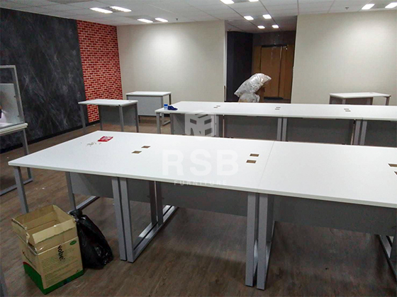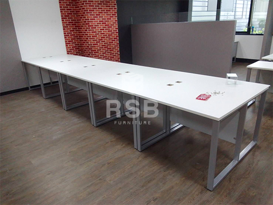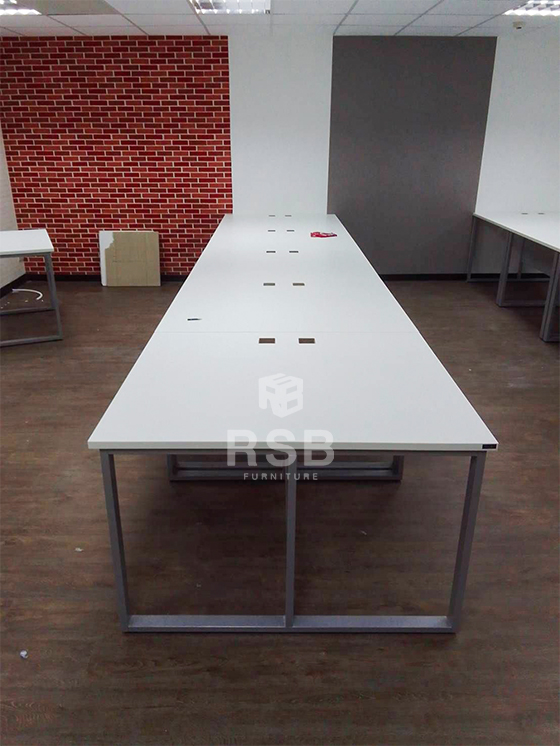 ส่งถึงสถานที่จริง และประกอบติดตั้งให้ค่ะ หน้างานนี้ลูกค้าสั่งซื้อเป็นโต๊ะทำงานขาเหล็ก ทรงเหล็กกล่องสี่เหลี่ยม รหัสสินค้า 837 จำนวนหลายตัว ได้เลือกใช้เป็นขนาด กว้าง 120 x ลึก 60 ซม. หน้าท๊อปและบังขาเลือกใช้เมลามีนสีขาว ส่วนขาเหล็กเลือกใช้เป็นสีเทาค่ะ และได้สั่งเจาะรูไว้มุมของโต๊ะทุกตัวสำหรับใส่กล่องรอดสายไฟ รหัส 4478 ด้วยค่ะ หน้างานนี้ลูกค้าได้นำมาเรียงแถวยาวและนำด้านหน้าของโต๊ะชนเข้าหากันค่ะ