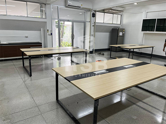 จัดส่งถึงที่เรียบร้อยแล้วค่ะสำหรับหน้างานนี้ ลูกค้าได้เลือกซื้อโต๊ะประชุมทรงสี่เหลี่ยม ขาเหล็กกล่องตัว C รหัสสินค้า 4767 ขนาดหน้ากว้างพิเศษ 140 cm เวลานั่งตรงข้ามกันมีพื้นที่ใช้สอยมากขึ้น ขาไม่ติดชนกันง่าย หน้า Top สีบีชคาดกลางดำ ขาเหล็กดำ พร้อมเจาะรูใส่กล่องใส่ปลั๊กไฟ ฝั่งบนโต๊ะ 2 จุด กล่องขนาด W30 x D13.8 H10 CM รหัสสินค้า 3877 รุ่นนี้วัสดุเหล็กพ่นสีขาว ฝาเปิด ปิดขึ้นลง ตรงช่องรอดสายมีขนเส้นสีดำ ไว้กันฝุ่นลงไปที่ช่องค่ะ