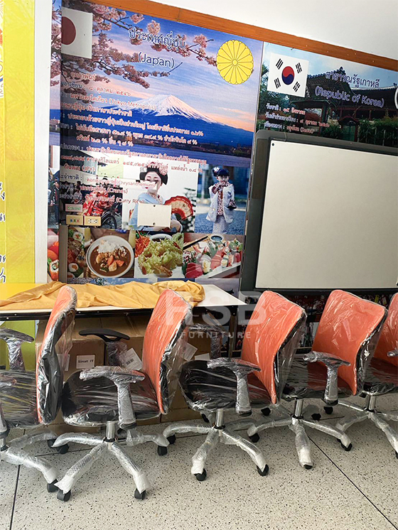 จัดส่งถึงที่เรียบร้อย ลูกค้าเลือกใช้เก้าอี้สำนักงาน พนักพิงตาข่ายสีส้ม รหัสสินค้า 1229 รุ่นนี้สามารถเลือกสีพนักพิงได้ค่ะ เบาะนั่งฟองน้ำหนาและหุ้มด้วยผ้าตาข่ายนั่งสบาย นิ่มมาก มีที่ท้าวแขนทำจากวัสดุแบบหนา แข็งแรง เก้าอี้ปรับสูงต่ำได้และปรับเอนการเอนได้ค่ะ