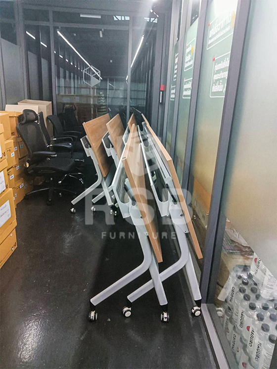 หน้างานจัดส่งโต๊ะประชุม ขาเหล็ก DESIGN WORK รหัส 2972 จุดเด่นรุ่นนี้อยู่ที่การดีไซน์ขาเหล็ก สีเทา LOFT ทรงสามเหลี่ยม