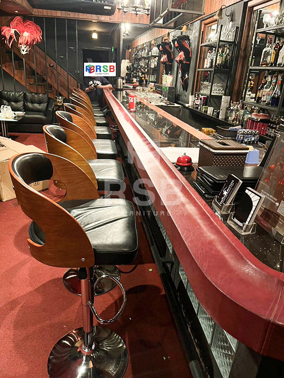 จัดส่งถึงสถานที่เรียบร้อยค่ะ เก้าอี้บาร์ สไตล์วินเทจ โครงพนักพิงทำจากวัสดุไม้วีเนียร์ ลายไม้เด่นคมชัด สวยมากๆ รหัสสินค้า 4577 พนักพิงเวลาพิงเสริมด้วยฟองน้ำและหุ้มด้วยหนังสีดำ เบาะนั่งก็หุ้มด้วยหนังสีดำ สวยและลงตัวมากๆค่ะ เก้าอี้ปรับสูงต่ำได้ตามความต้องการของคนนั่ง