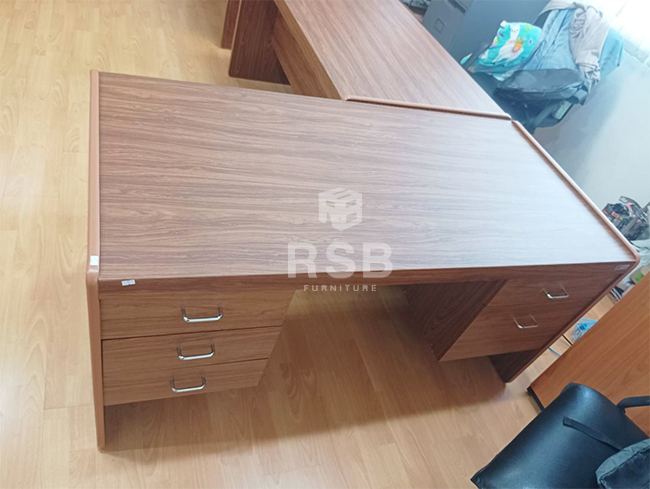 จัดส่งถึงที่แล้วค่ะสำหรับโต๊ะโซนนั่งทำงาน โต๊ะรุ่นนี้ รหัสสินค้า 4183 โต๊ะรุ่นนี้มี 5 ลิ้นชัก ซ้าย 3 ขวา 2 หน้าโต๊ะปิดผิว PVC กันน้ำกันรอยขีดข่วน ส่วนด้านข้างปิดผิวด้วย PU Foil คุณภาพ ปิดขอบด้วยยางค่ะ หน้างานนี้ลูกค้าเลือกสีโต๊ะเป็นเชอรี่ล้วนค่ะ