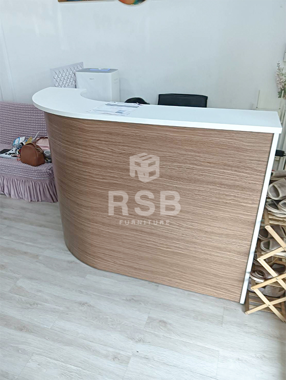 จัดส่งเคาน์เตอร์ประชาสัมพันธ์ หน้าโค้ง รหัสสินค้า 1273 รุ่นนี้ด้านในจะมี 3 ลิ้นชักพร้อมกุญแจล็อคช่วยเพิ่มการรับน้ำหนักได้ดีเลยค่ะ ลูกค้าได้เลือกโค้งมุมฝั่งขวาค่ะ และเลือกเฉพาะหน้าเคาน์เตอร์สีคาปู ส่วนอื่นสีขาวล้วนค่ะ