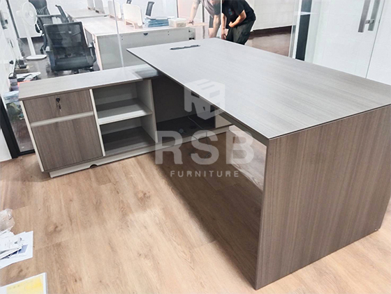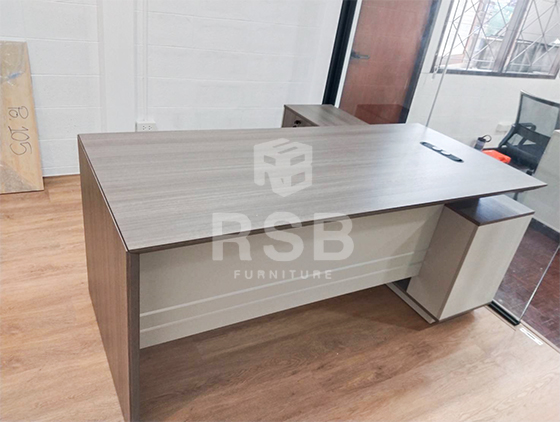 จัดส่งและประกอบติดตั้งเรียบร้อยโตีะทำงานผู้บริหาร ตัวแอล ขนาดกว้าง 180 cm พร้อมตู้ไซด์บอร์ดเก็บเอกสาร รหัสสินค้า 4960 มี 2 ลิ้นชักและช่องโล่ง ลิ้นชักมีกุญแจล็อคสามารถเก็บเอกสารสำคัญได้ค่ะ และมีปลั๊กไฟให้บนท๊อป พร้อมสายเสียบใช้งานได้ทันที