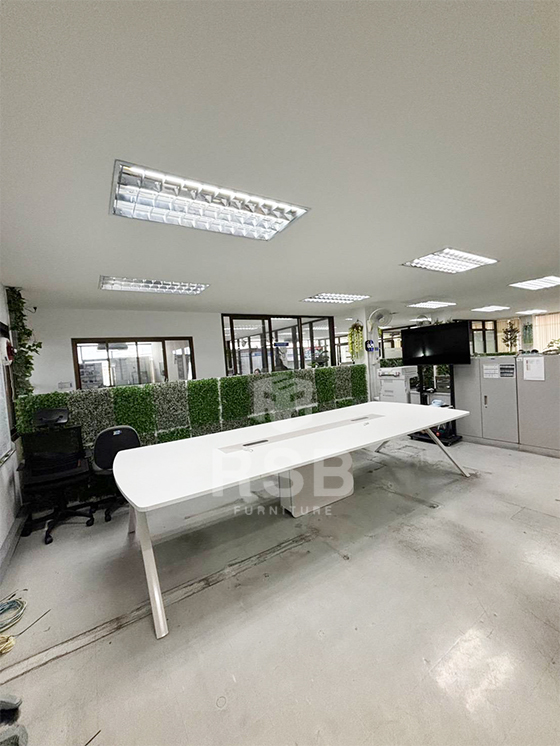 จัดส่งและประกอบติดตั้งให้เรียบร้อยค่ะ โต๊ะประชุม ขนาด 360 x 138.5 cm รหัสสินค้า 5186 ขาโต๊ะประชุมวัสดุเหล็กหนา กระจายการรับน้ำหนักได้ดี และมีขากลางทรงกล่องช่วยรับน้ำหนักได้ดีอีกด้วยค่ะ ในภาพเป็นโซนบริเวณสำหรับประชุมภายในออฟฟิศลูกค้าค่ะ