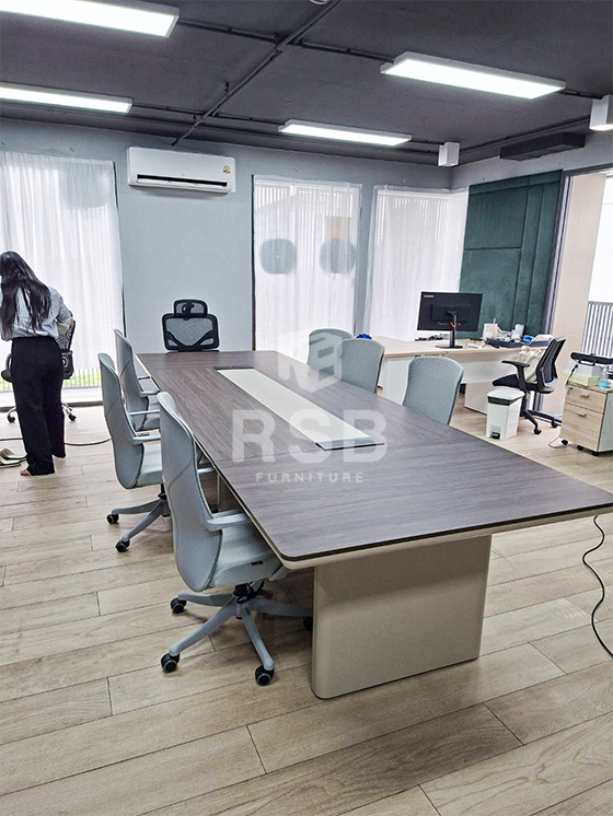 จัดส่งเรียบร้อยหน้างานนี้ลูกค้าเลือกสั่งซื้อโต๊ะประชุมพร้อมเก้าอี้นั่งประชุมค่ะ เลือกโต๊ะประชุม รหัส 4803 รุ่นนี้มี 3 ขา พร้อมแผ่นบังขา บนท๊อปมีกล่องปลั๊ก 2 จุด และส่วนเก้าอี้เลือกใช้เป็นเก้าอี้ รหัส 4796 รุ่นนี้ดีไซน์เก้าอี้เป็นสีเทา สไลต์มินิมอล รวมถึงขาด้วยก็สีเทาวัสดุไฟเบอร์ แข็งแรงทนทานค่ะ
