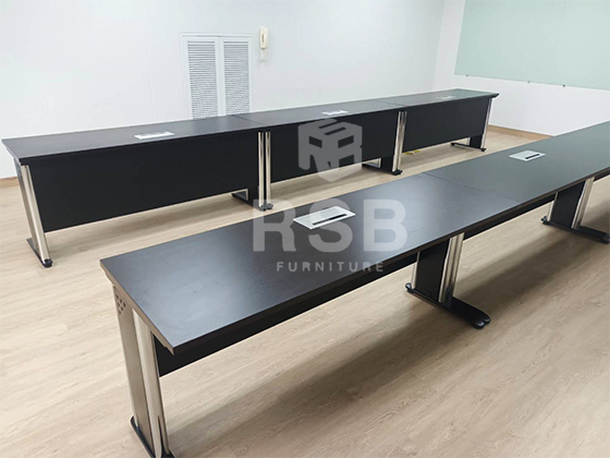 จัดส่งเรียบร้อย ลูกค้าเลือกสั่งซื้อโต๊ะทำงานขาเหล็กปั้มเงา แบบโล่งมีบังหน้า รหัสสินค้า 1042 ไปเรียบต่อกัน 2 แถว ทำเป็นโต๊ะประชุมค่ะ และสั่งเจาะรูใส่กล่องรอดสายไฟบนท๊อปตรงกลางด้านมุมบนเพิ่ม และเลือกโต๊ะเมลามีนสีดำทั้งตัวค่ะ