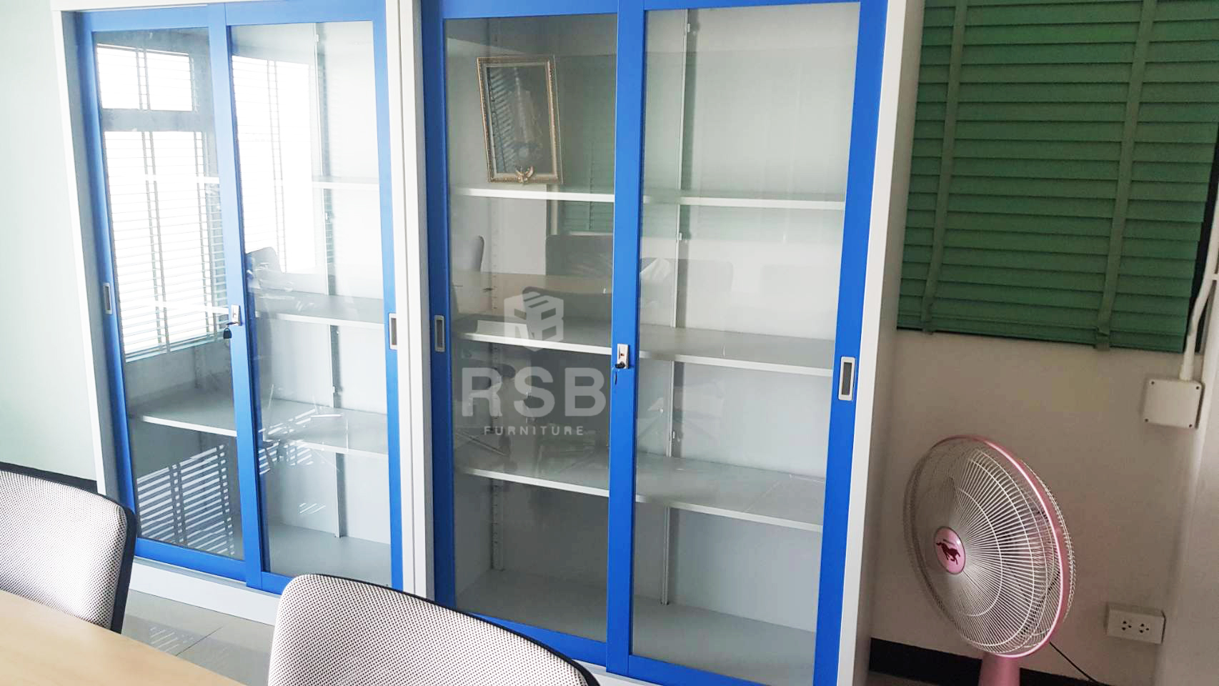 ภาพถ่ายจากหน้างานจริงที่นำตู้เอกสารเหล็ก Lucky world รุ่น KSG -914 ไปจัดส่งถึงที่แล้วค่ะ หน้างานนี้ลูกค้าเลือกนำไปใช้งานภายในห้องประชุมค่ะ ได้เลือกสั่งสีน้ำเงินเฉพาะบานเปิดค่ะ โจทย์ อลูกค้าต้องการตู้เหล็ก ที่เป็นบานเลื่อนกระจก เพื่อตั้งโชว์ของรางวัล ในห้องประชุม