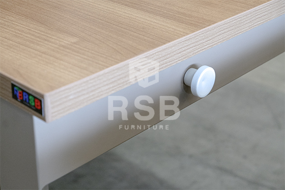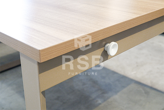 – ที่ปลายขามีปุ่มหมุนปรับระดับ เผื่อจุดที่วางพื้นไม่เท่ากัน สามารถปรับให้โต๊ะไม่โยกได้