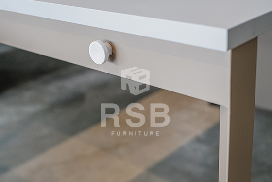 – ที่ปลายขามีปุ่มหมุนปรับระดับ เผื่อจุดที่วางพื้นไม่เท่ากัน สามารถปรับให้โต๊ะไม่โยกได้