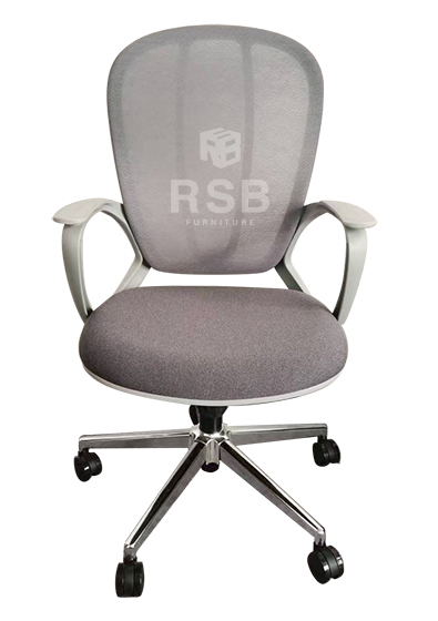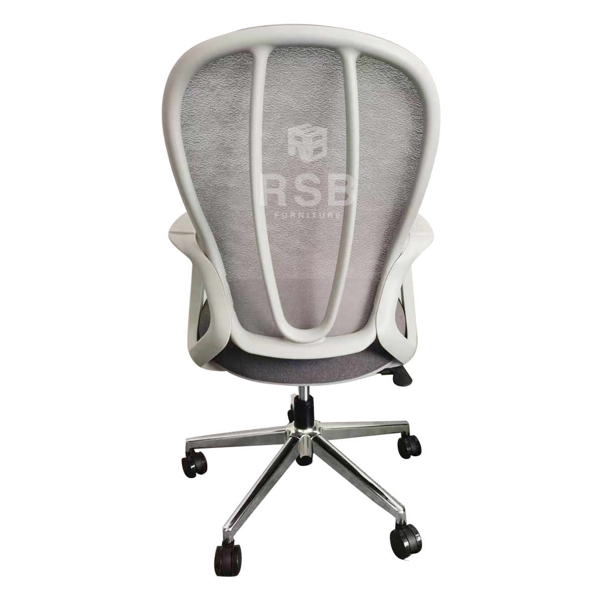 – โครงพนักพิงทรงขนมปังสีเทา ทำจาก PP แบบไล่ระดับสองชั้น พร้อมที่รองรับเอวโค้งมนอย่างนุ่มนวล