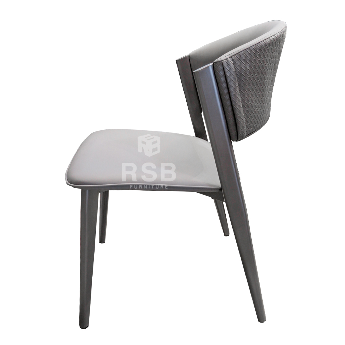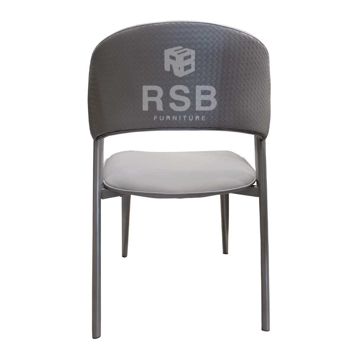 เก้าอี้อาหาร โครงเหล็กสีเทา เงา พนักพิงหนังถักลายสาน รหัส 4679