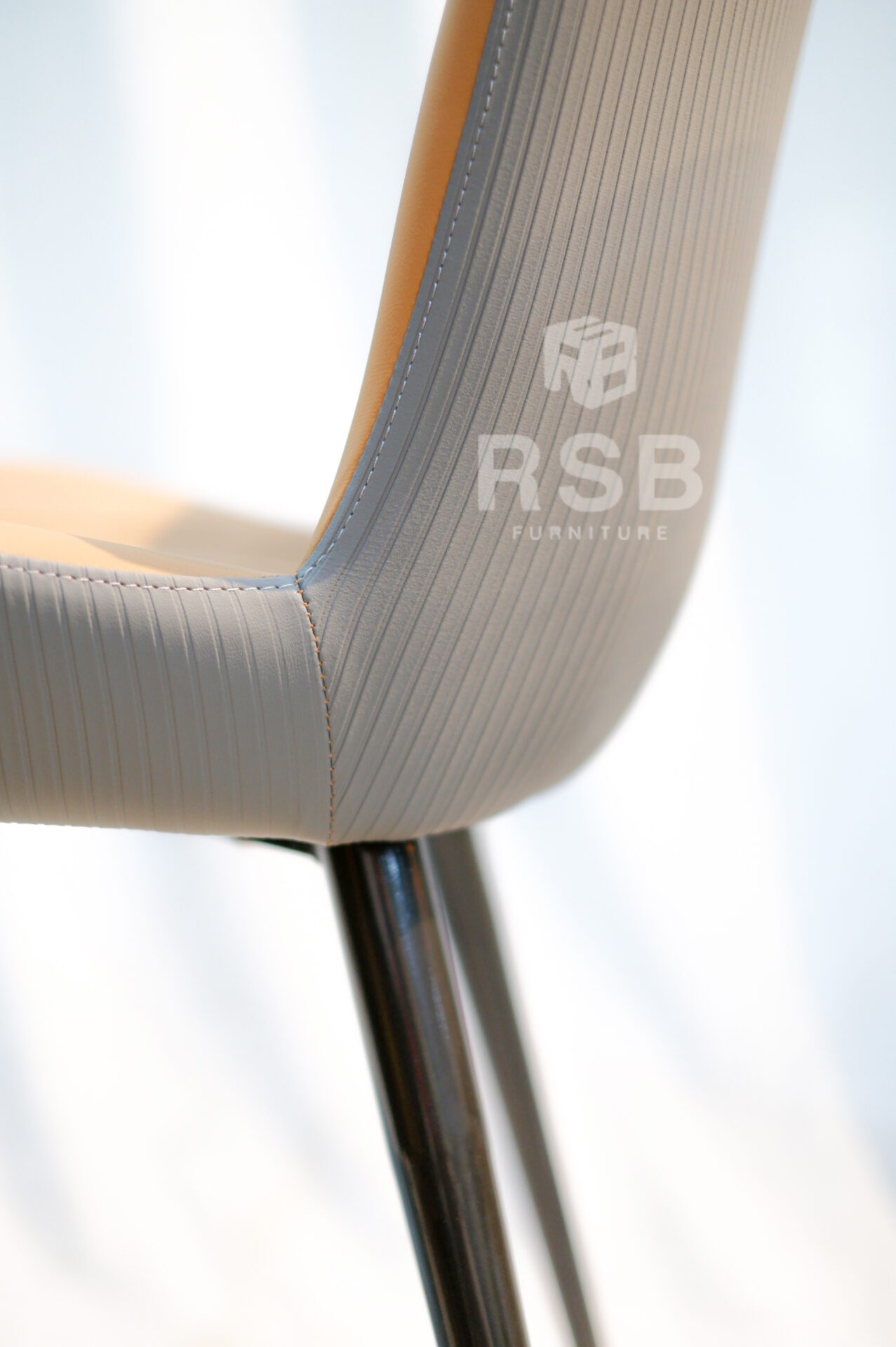 เก้าอี้อาหาร เหล็กกลมหนา 1.5 mm พนักพิงหลังสีเทา ดีไซน์เดินหนังแบบลายเส้น รหัส 4661