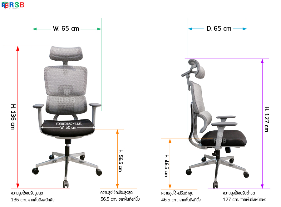 – ขนาดกว้าง 65 cm x ลึก 65 cm x สูง 127 – 136 cm ความกว้างเฉพาะเบาะ 50 cm
