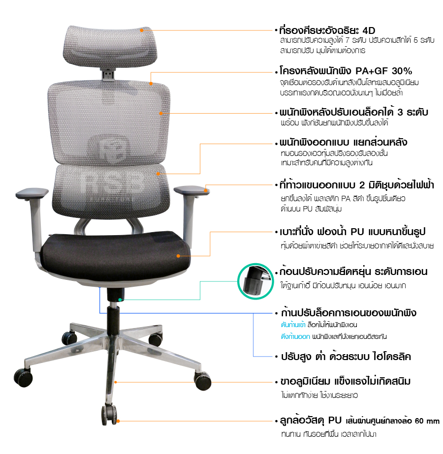 – เก้าอี้ Ergonomic ปรับทุกตำแหน่งให้รองรับการ การพิงเอนใช้งาน ของผู้นั่งที่สุด
