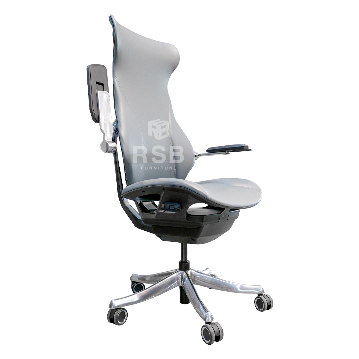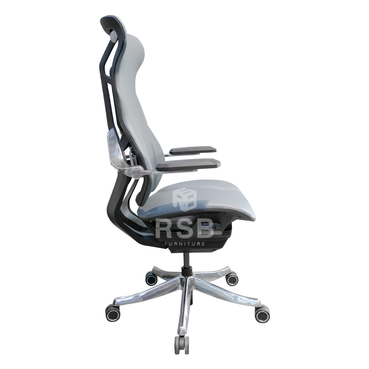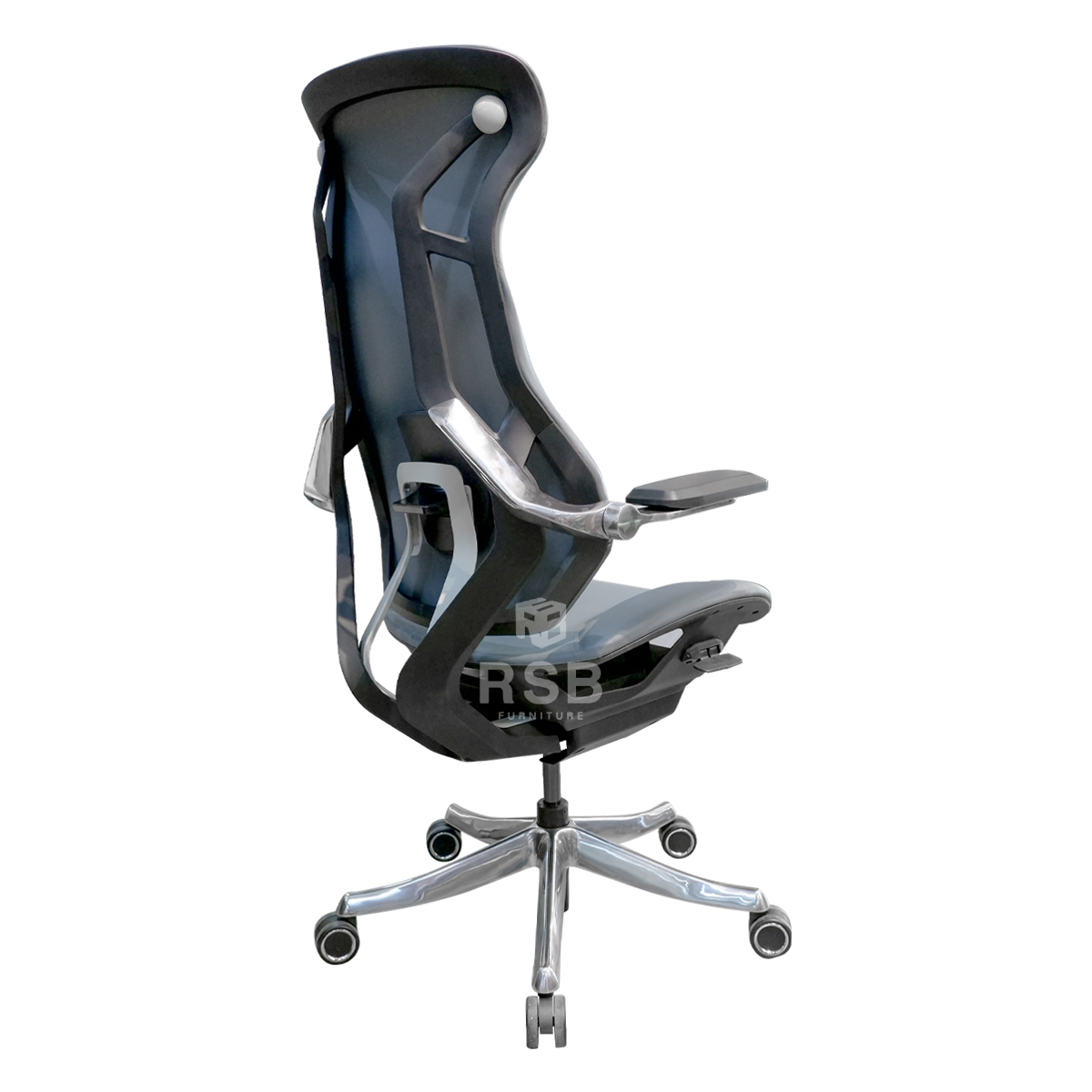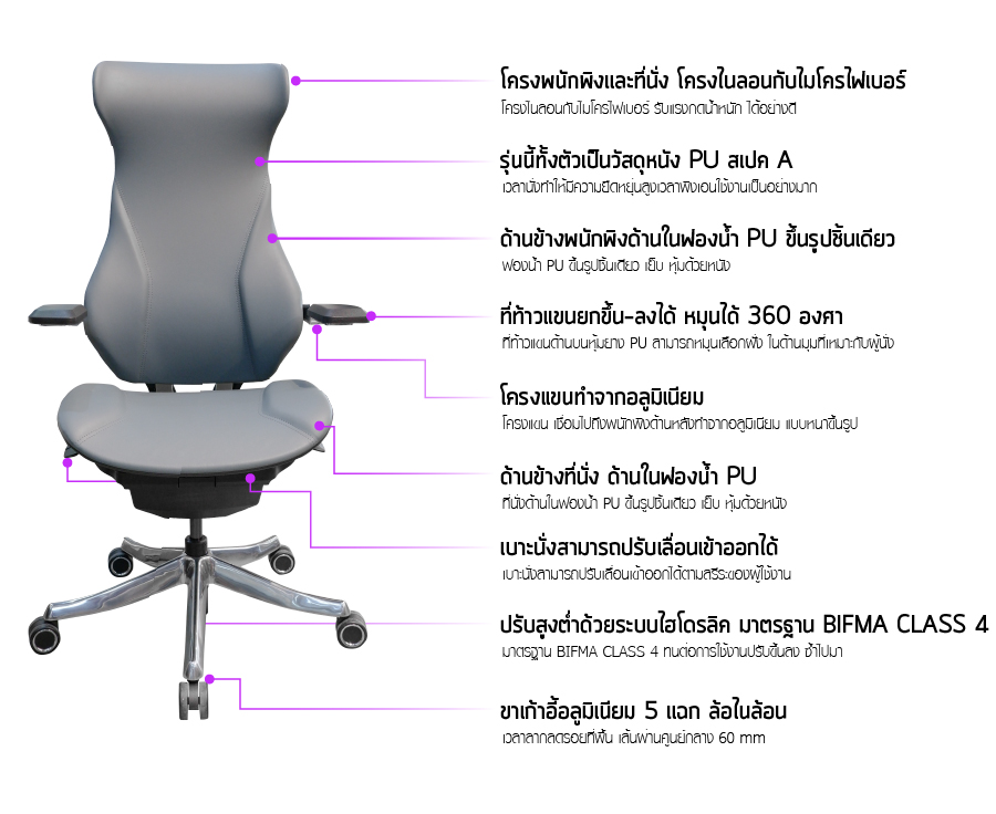 -เป็นเก้าอี้ผู้บริหาร รุ่นขายดี รูปทรงโดดเด่น ดีไซน์เป็นเอกลักษณ์มาก เก้าอี้ส่วนใหญ่จะเป็นพนักพิงตาข่าย แต่รุ่นนี้เป็นวัสดุหนัง PU สเปค A ขึงแทนตาข่าย ทำให้มีความยืดหยุ่นสูงเวลาพิงเอนใช้งานเป็นอย่างมาก