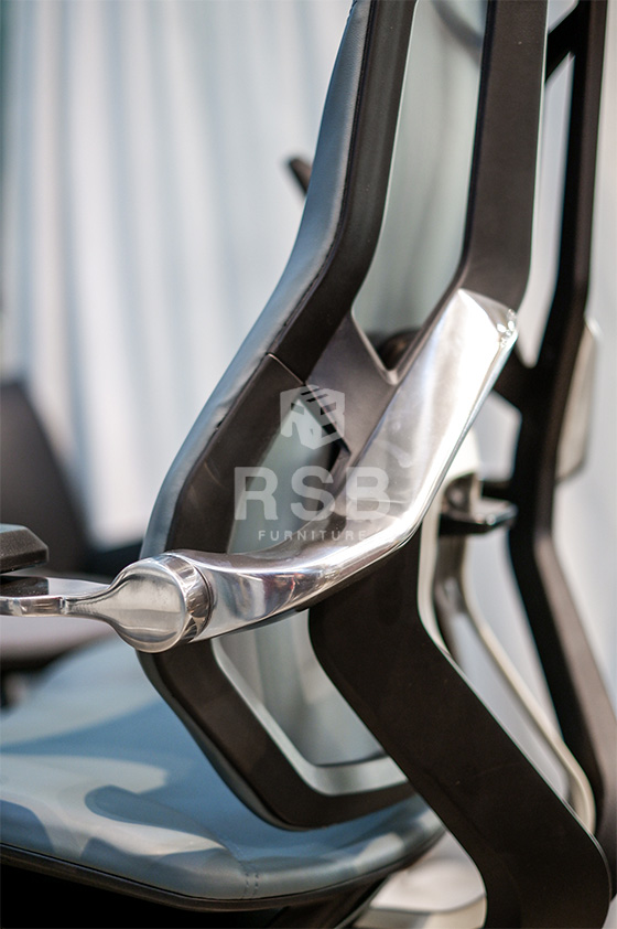 – โครงแขน เชื่อมไปถึงพนักพิงด้านหลังทำจากอลูมิเนียม แบบหนาขึ้นรูป