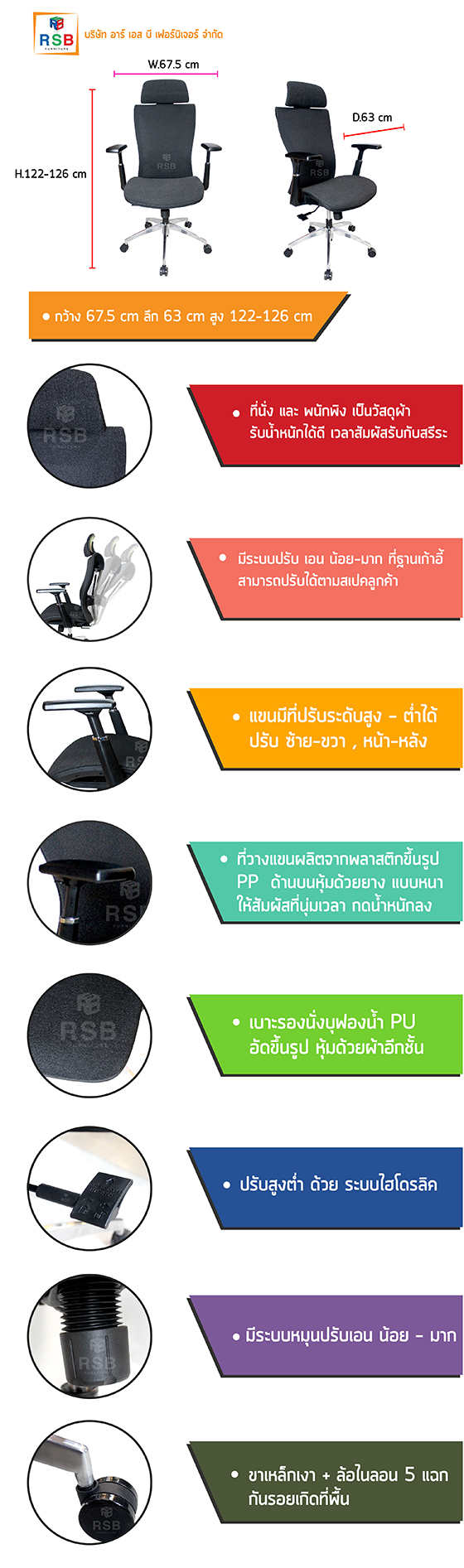 เก้าอี้ผู้บริหาร Design work เบาะผ้า โครงสร้างออกแบบ รับกับสีรระ รหัส 3504