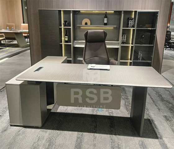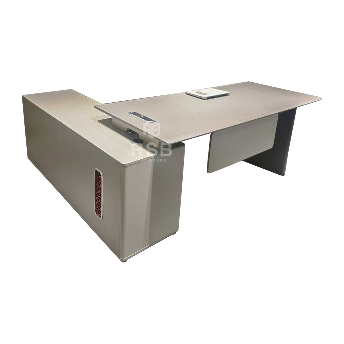โต๊ะผู้บริหาร Design work ขนาด 200 x 166 cm พร้อมไซด์บอร์ดข้าง รหัส 5293