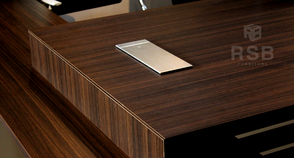 – หน้าโต๊ะ ผิวเมลามีนหนา 50 mm ที่ขอบ ดีไซน์ทำเฉียงเข้ามุม 45 องศา