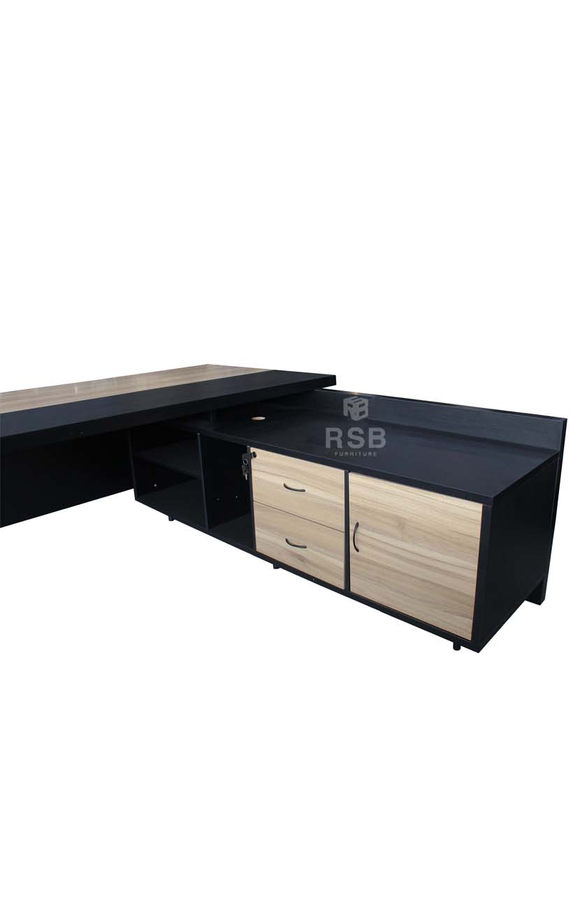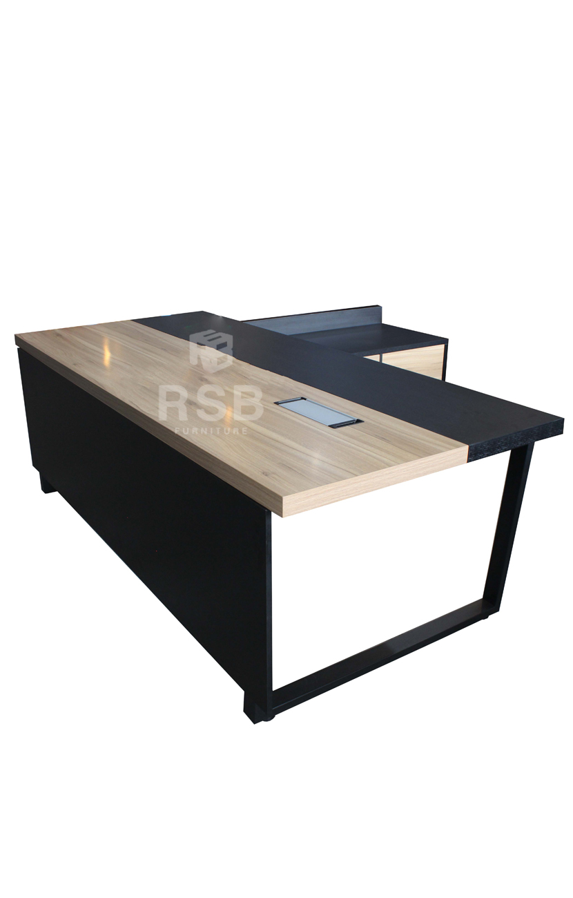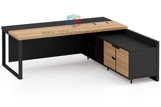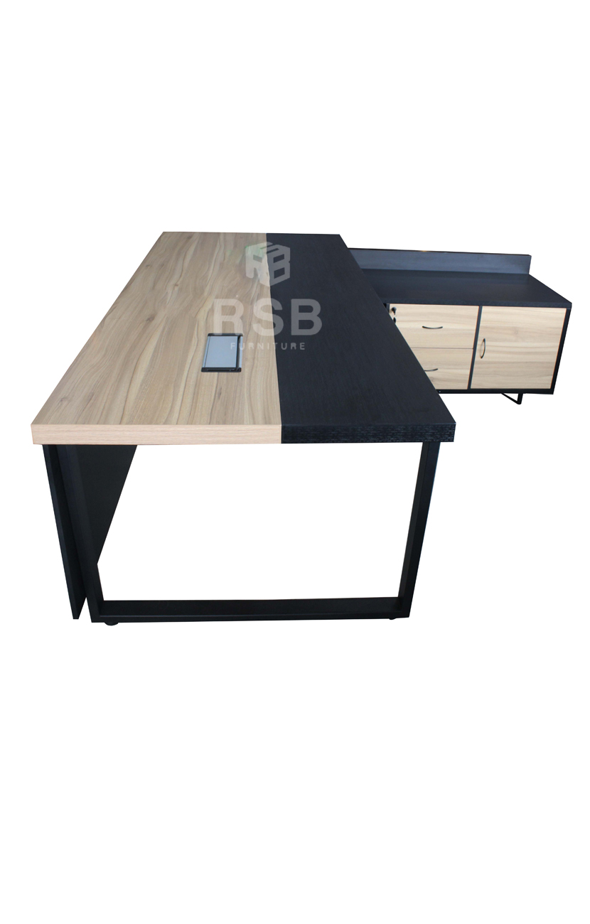 โต๊ะทำงานผู้บริหาร TOP หนา 50 mm พร้อมตู้ไซด์บอร์ดข้าง Loft Design ขนาด 220 x 210cm รหัส 2431