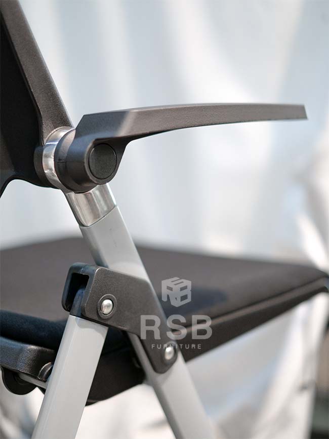 – ที่นั่งสามารถพับเบาะขึ้น แล้วพับเก้าอี้เก็บทั้งตัวได้ เวลาจัดเก็บวางชิดเรียงกัน ประหยัดพื้นที่ใช้งานเป็นอย่างมาก
