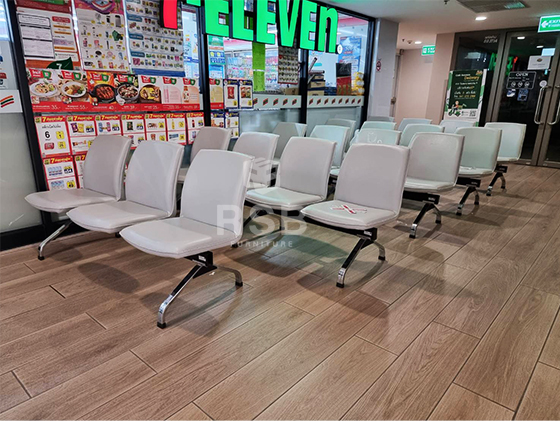 หน้างานนี้เลือกใช้เก้าอี้แถวเพราะมีความเรียบร้อยในการนำไปจัดวางไม่เกะกะ และรับน้ำหนักได้ดี อย่างหน้างานนี้ได้เลือกใช้เก้าอี้แบบ 4 ที่นั่งและ 3 ที่นั่ง รหัสสินค้า 4144 ที่นั่งและพนักพิงทำจากฟองน้ำหุ้มด้วยหนัง PVC สามารถเลือกสีหนังได้ ส่วนขาเหล็กหนาชุบโครเมี่ยม มีคานเหล็กกล่องหนาใต้เก้าอี้ รับน้ำหนักได้อย่างดี