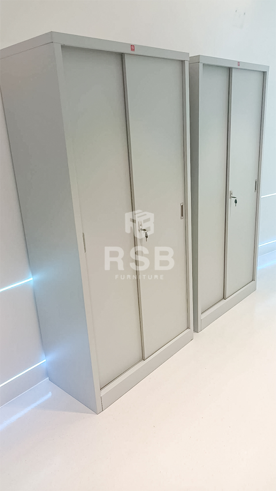 หน้างานนี้ลูกค้าต้องการตู้เก็บเอกสารเหล็ก ได้เลือกใช้เป็นตู้เหล็กบานเลื่อน ขนาด W91.4 x D45.7 x H183 cm. ยี่ห้อ Luckyworld รุ่น KSS-914 รหัสสินค้า 795 ภายในมี 3 แผ่นชั้น เก็บเอกสารเก็บของได้สบาย พร้อมมีกุญแจล็อค ลูกค้าได้เลือกใช้สี TG ทั้ง 2 ตู้เลยค่ะ