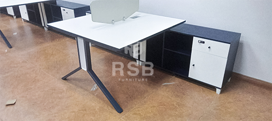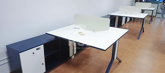 หน้างานนี้ลูกค้าอยากได้โต๊ะทำงานกลุ่มที่ประหยัดพื้นที่ และเหมาะเข้ากับภายในห้องโซนทำงาน ได้เลือกใช้เป็นโต๊ะทำงานกลุ่ม แบบ 2 ที่นั่ง รหัสสินค้า 4667 รุ่นนี้ออกแบบไซด์บอร์ดข้างด้านล่างวางเชื่อมยาวต่อกัน มี 1 ลิ้นชัก 1 บานเปิด + 3 ช่องโล่ง พร้อมกุญแจล็อคแบบรหัส แยกกัน ทั้ง 2 ฝั่ง และมีฉากกั้นช่วยเพิ่มสมาธิการทำงานที่ดีขึ้นให้พนักงานด้วยค่ะ