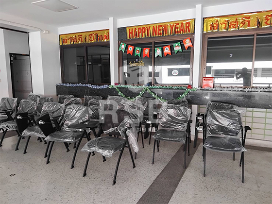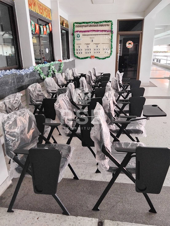 สำหรับหน้างานนี้จัดส่งเก้าอี้เลคเชอร์รุ่นพนักพิงใหญ่โค้งเว้า สถานที่ภายในโรงเรียนค่ะ ลูกค้าสั่งซื้อไปใช้สำหรับห้องเรียน รุ่นนี้สามารถพับได้ พับเบาะดึงแขนขึ้นพับเก็บได้ทั้งตัว บนแผ่นแขียนมีที่วางปากกาและที่วางแก้วน้ำ แผ่นเขียนพับเก็บข้างลำตัวได้เวลาลุกนั่งสะดวก เบาะนั่งด้านในบุฟองน้ำและหุ้มด้วยผ้า นั่งสบาย ใช้งานสะดวก คุ้มค่ามาก พนักพิงหุ้มด้วยผ้าตาข่ายระบายความร้อนที่หลังได้อย่างดีเลยค่ะ ขาเหล็กหนา รับน้ำหนักได้เยอะ ปลายขามีจุกยางกันรอยที่พื้นเวลาลากไปมาด้วย รหัสสินค้า 4777