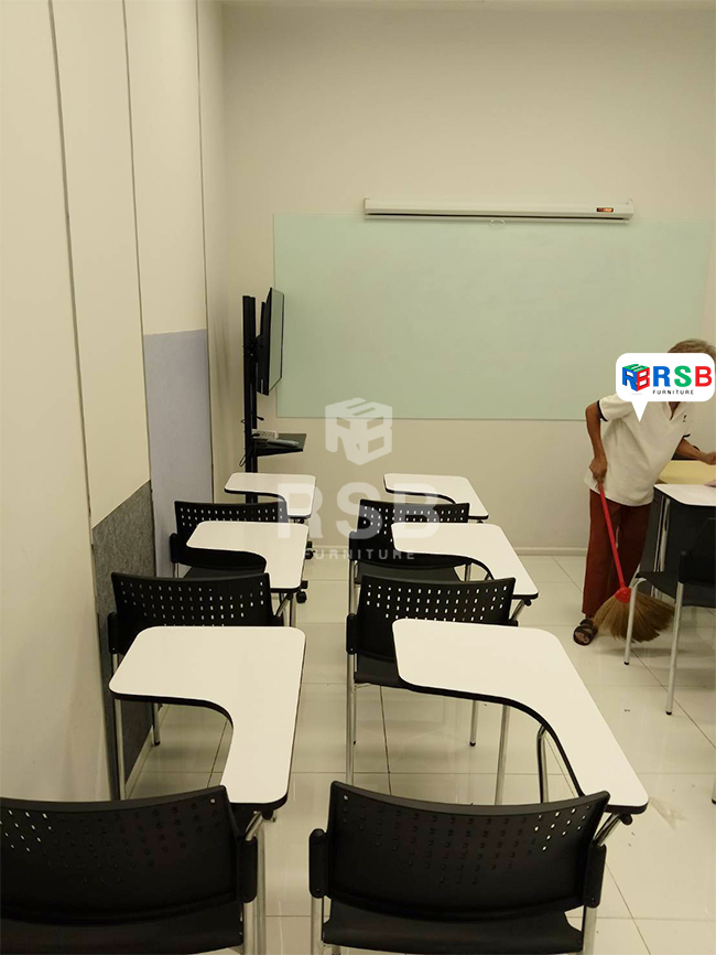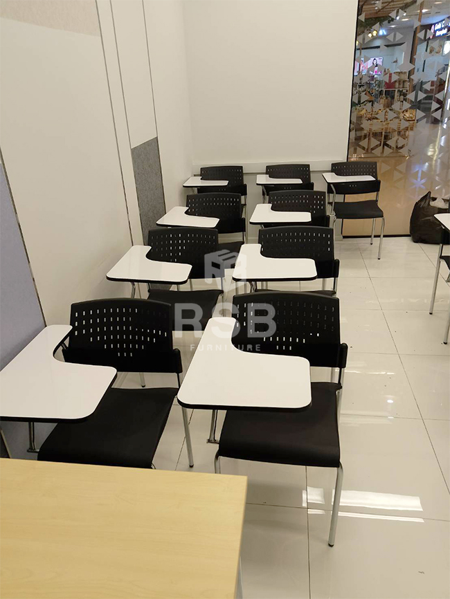 สำหรับหน้างานนี้จัดส่งเก้าอี้เลคเชอร์ รุ่นขายดีของทาง RSB ค่ะ รุ่นนี้โครงเหล็กหนา พนักพิงและที่นั่งทำจาก PP COPOLYMER ฉีดขึ้นรูป ส่วนแผ่นที่เขียน ทำจากไม้ Particle Board ตัดขึ้นรูป ลูกค้าได้เลือกสั่งเป็นสีดำทั้งตัวค่ะ รุ่นนี้เป็นรุ่นที่นิยมมากค่ะ สำหรับเลคเชอร์ ราคาไม่แพงมาก และคุณภาพดีค่ะ ตอบโจทย์ลูกค้าหน้างานนี้มาก