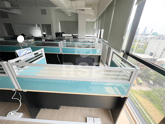 หน้างานนี้ลูกค้าได้สั่งซื้อมินิสกรีนเพิ่ม ให้นำไปติดตั้งบนโต๊ะทำงานที่เคยสั่งซื้อกับทาง RSB ค่ะ ได้สั่งเป็นมินิสกรีน แบบครึ่งทึบครึ่งกระจกขัดลาย กรอบอลูมิเนียม รหัสสินค้า 2694 ได้สั่งสีมินิสกรีนเป็นสีฟ้าน้ำทะเลค่ะ