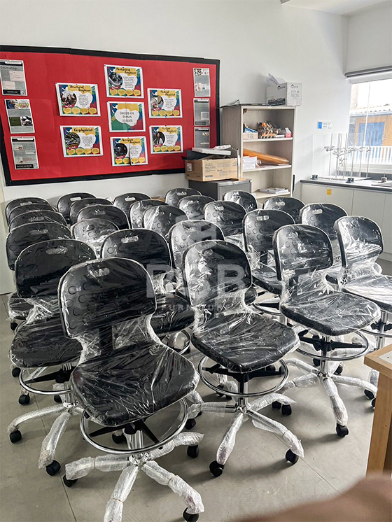 สำหรับหน้างานนี้จัดส่งสถานที่โรงเรียนภายในห้องเรียนวิทยาศาสตร์ ได้สั่งซื้อเก้าบาร์ ที่ใช้สำหรับห้องแล็ปค่ะ รหัสสินค้า 4896 พนักพิงและที่นั่งวัสดุ PU แบบอัดขึ้นรูปดีไซน์ปุ่มนูนๆขึ้นมาสำหรับกันลื่นเวลานั่งเคลื่อนย้ายเก้าอี้ไปมา มีที่พักเท้า แข็งแรง และลูกล้อเลื่อนได้ดีวัสดุไนลอน ช่วยกันรอยเวลาเคลื่อนย้ายอีกด้วย