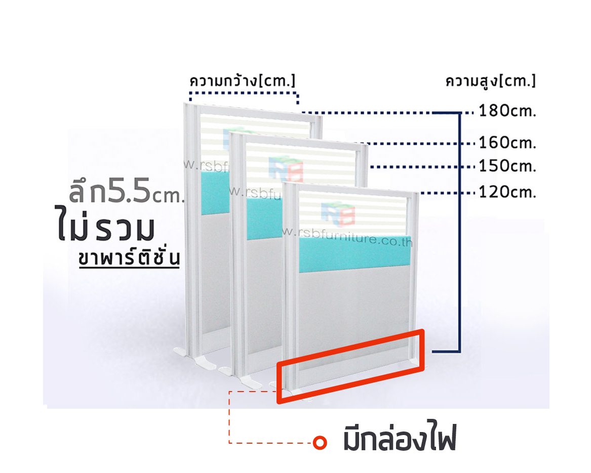2819-160-100 : พาทิชั่น รุ่นเซาะร่อง แบบครึ่งทึบ ครึ่งกระจกขัดลาย มีเฟรมปิดด้านล่าง มีกล่องไฟ รหัส 2819