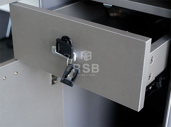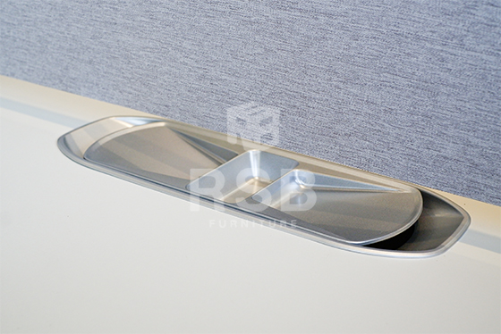 – หน้าโต๊ะ TOP ปิดผิวเมลามีน กันรอย กันความชื้น และมีถาดวางของฝั่งอยู่บนโต๊ะ พร้อมรูรอดสายไฟ