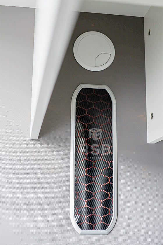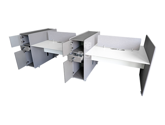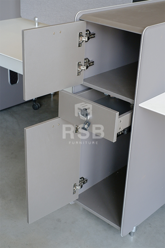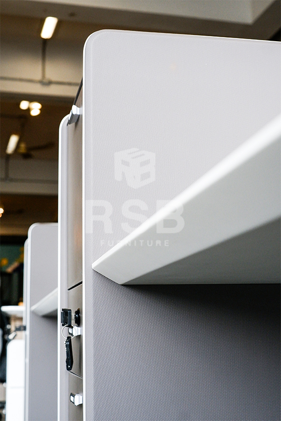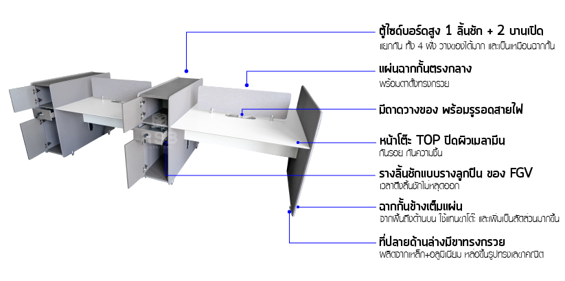 – ฉากกั้นข้างเต็มแผ่น จากพื้นถึงด้านบน ใช้แทนขาโต๊ะ และเพิ่มความเป็นสัดส่วนมากขึ้น