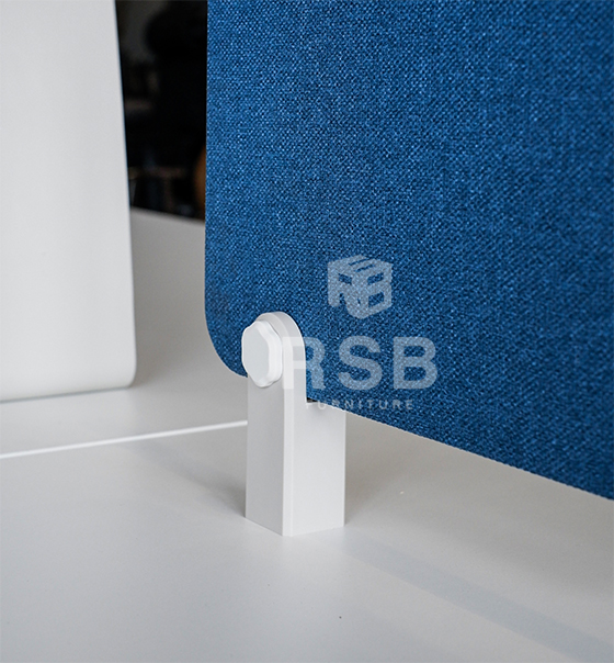 – แผ่นฉากกั้นตรงกลาง บนโต๊ะ สีน้ำเงินกรม โครงฉากเหล็ก
