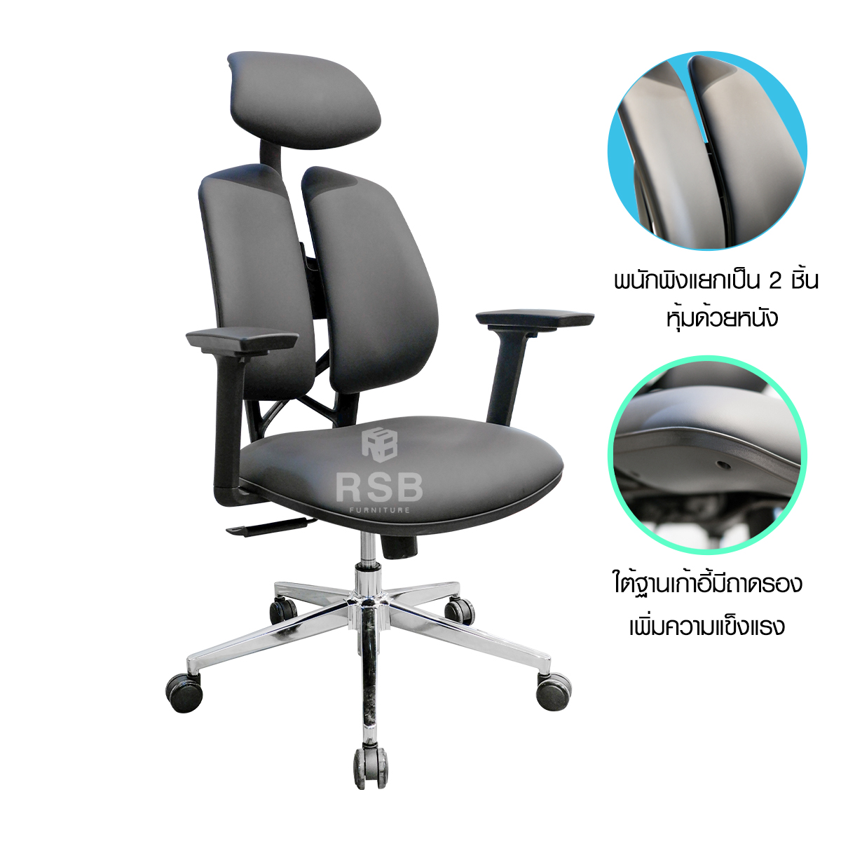 เก้าอี้ทำงานเพื่อสุขภาพ พนักพิงแยก 2 ชิ้น หุ้มด้วยหนัง รหัส 4867