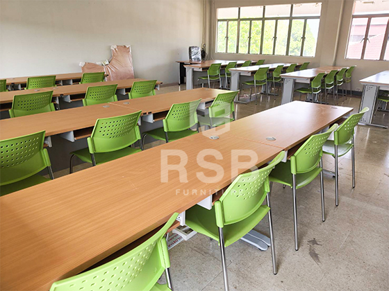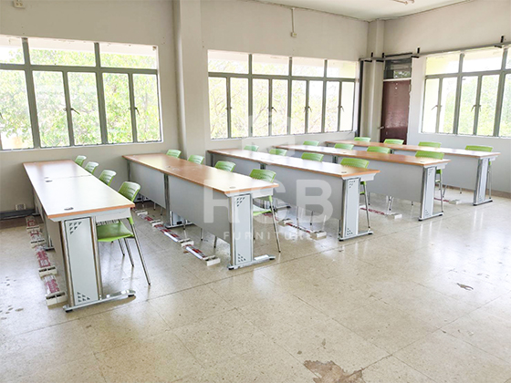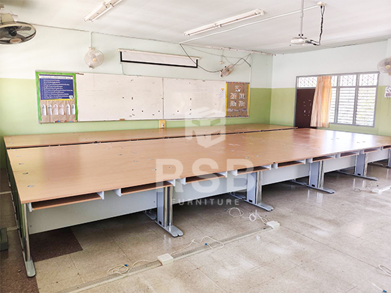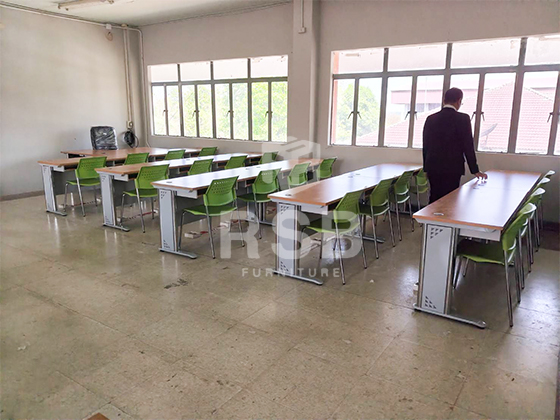 นำภาพถ่ายจากหน้างานจัดส่งโต๊ะคอมพิวเตอร์ขาเหล็กปั้มเงาพร้อมเก้าอี้สำนักงานรุ่นขายดี โต๊ะคอมพิวเตอร์ในภาพ รหัสสินค้า 2224 ลูกค้าเลือกสั่งขนาด กว้าง 180 cm จะมีคีย์บอร์ด 2 อัน สามารถนั่งได้จำนวน 2 คนต่อ 1 โต๊ะ และมีรูรอดสายไฟพร้อมฝาครอบบนท๊อปให้ 2 จุด บริเวณมุมโต๊ะช่วยให้ไม่เกะกะขาเวลานั่ง เลือกท๊อปโต๊ะเมลามีนสีบีช และส่วนอื่นๆรวมถึงขาโต๊ะสีขาว ส่วนเก้าอี้สำนักงาน รหัสสินค้า 603 ขาเหล็ก 4 ขา เหล็กหนา 1.2 mm รับน้ำหนักได้ดี สามารถเลือกสีของพนักพิงและที่นั่งได้ ลูกค้าเลือกสีเขียวทั้งพนักพิงและที่นั่งเลยค่ะ