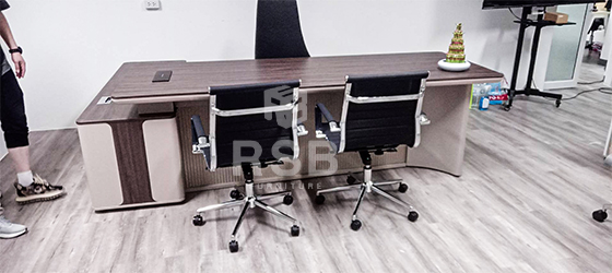 นำภาพถ่ายจากหน้างานที่นำโต๊ะผู้บริหารเข้ามุมรุ่นขายดี ไปจัดส่งมาฝากค่ะ ในภาพเป็นโซนภายในห้องทำงานได้สั่งซื้อโต๊ะผู้บริหาร Timeless design ขนาด 260 x 170 cm ไปนั่งทำงานค่ะ รหัสสินค้า 4804 รุ่นนี้ตอบโจทย์ลูกค้าด้วยการดีไซน์ของสีโต๊ะเข้ากันกับพื้นห้องทำงานของลูกค้าค่ะ และฟังก์ชั่นครบครัน มีกล่องปลั๊กไฟแบบฝาสไลด์ใช้งานสะดวก และมีช่องรอดสายไฟ มี 2 ลิ้นชัก 1 บานเปิดและช่องโล่ง ลิ้นชักเป็นกุญแจแบบล็อครหัส คุ้มค่าคุ้มราคามาก