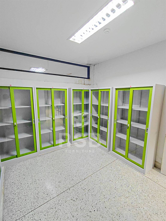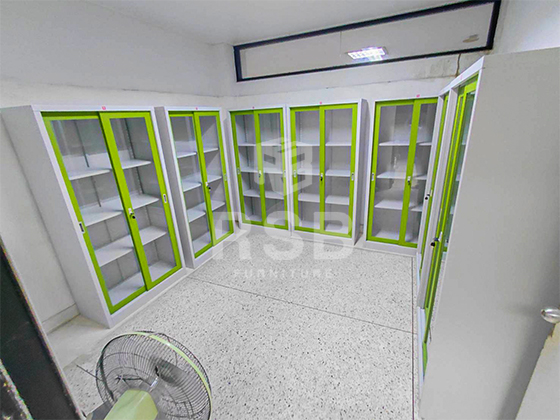ภาพถ่ายจากหน้างานจัดส่งตู้เอกสารเหล็กบานเลื่อน ยี่ห้อ LUCKY WORLD รหัสสินค้า 781 รุ่น KSG -914 ขนาดตู้กว้าง 91.4 cm ภายในมี 3 แผ่นชั้น สามารถเลื่อนปรับระดับสูงต่ำได้ และซื้อแผ่นชั้นเพิ่มได้ค่ะ ตู้สามารถเลือกสีหน้าบานเลื่อนได้ ในภาพลูกค้าเลือกใช้สีเขียว GG ทุกตู้เลยค่ะ