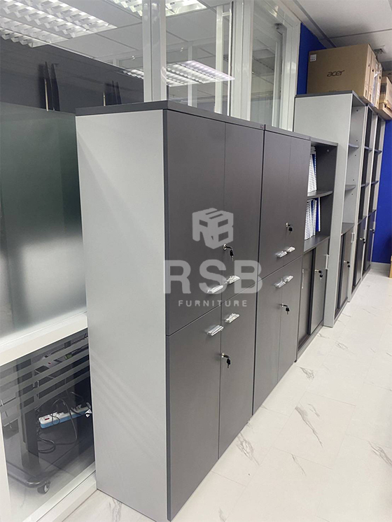 นำรีวิวภาพถ่ายจากหน้างานจัดส่งตู้เอกสารสูง ลูกค้าเลือกหน้าท๊อปสีกราไฟท์ ด้านข้างสีเทา สวยมากๆค่ะ รหัสสินค้า 995 รุ่นนี้ภายในมีแผ่นชั้นให้ และมีกุญแจให้ทั้งบานเปิดด้านบนและบานเปิดด้านล่างค่ะ ตู้ปิดผิวด้วยเมลามีน กันความชื้น ความร้อนได้ดีในระดันึงเลยค่ะ