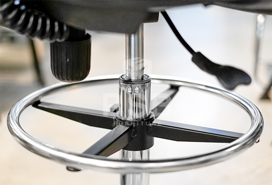 – ขาเป็นเหล็กชุบโครเมี่ยม มีห่วงกลมสำหรับวางเท้า เสริมด้านบน สามารถปรับระดับได้