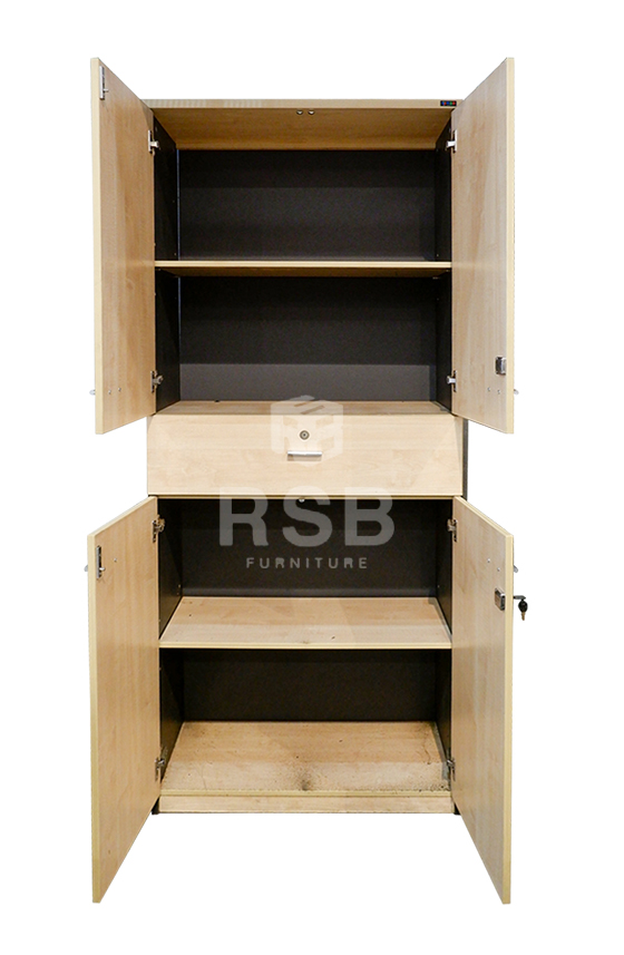 – 2ชั้นบนบานเปิด 2ชั้นล่างบานเปิด พร้อม 1 ลิ้นชักกลาง มีกุญแจล๊อค