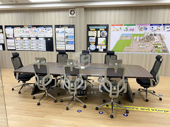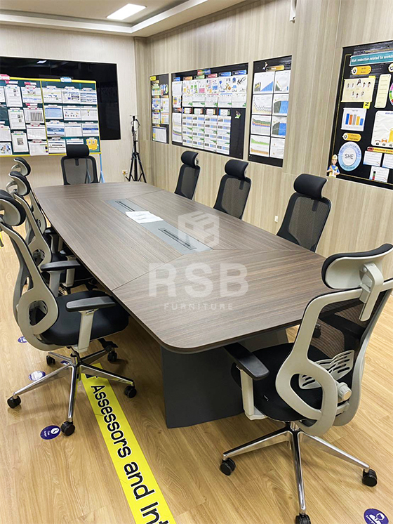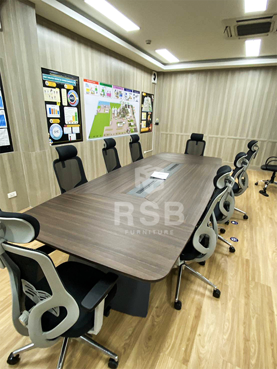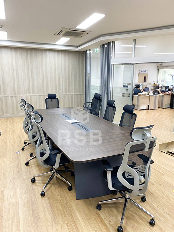จัดส่งและประกอบติดตั้งเรียบร้อย หน้างานนี้ลูกค้าต้องการเปลี่ยนโต๊ะประชุมภายในออฟฟิศใหม่ ต้องการขนาดที่นั่งประชุมได้ 6-8 ที่นั่ง และมีโครงสร้างที่แข็งแรง โต๊ะประชุมรุ่นนี้ตอบโจทย์ลูกค้า ขาโต๊ะวัสดุเหล็กหนา วางบิดเป็นชั้น และบนท๊อปโต๊ะมีกล่องรางไฟ กลางโต๊ะ ทรงยาว 2 จุด ขนาดโต๊ะ กว้าง 360 x ลึก 140 x สูง 76 cm รหัสสินค้า 3591