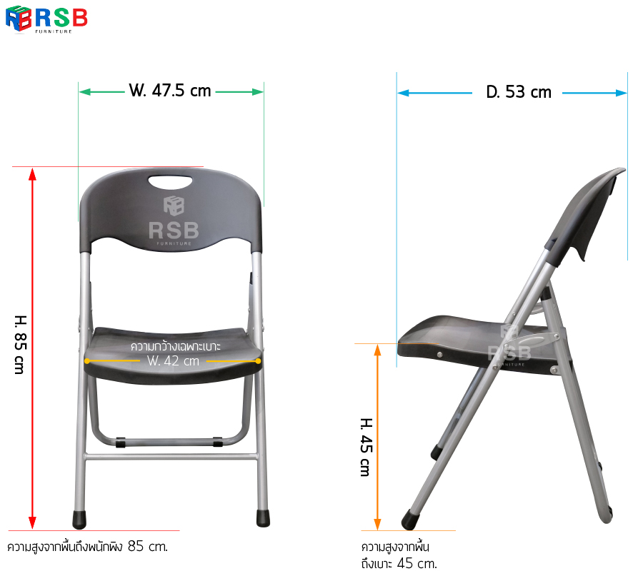 – ขนาด กว้าง 47.5 x ลึก 53 x สูง 85 cm ( ความกว้างเฉพาะเบาะ 42 cm )